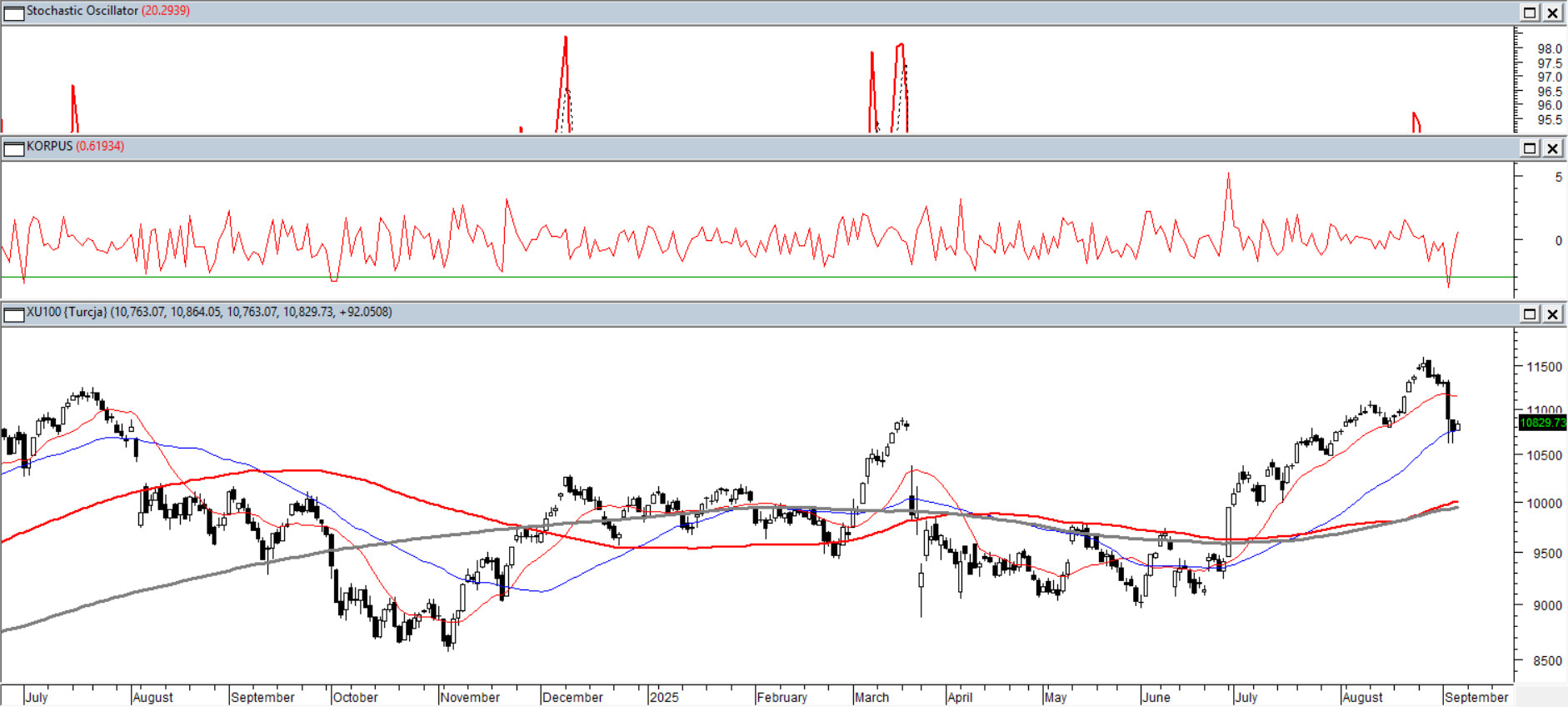 Najbardziej popularny indeks Turcji wszedł w stan korekty. Nie powinna ta sytuacja dziwić wszak kilka dni wcześniej bardzo silne wykupienie oscylatorów ostrzegało przed możliwym przejściem do fazy spadków. Tym razem odróżnieniu od podobnych sekwencji indeks nietypowo, we wtorek zniżkował aż ponad 3,5% i stało się to tak dynamicznie (po wykupieniu oscylatorów) pierwszy raz w ciągu ostatnich 12 miesięcy. To powinno zachęcać inwestorów do większej ostrożności. Optymistycznie usposobione byki liczą na trwałe zatrzymanie kursu na średniej ze 45 sesji.