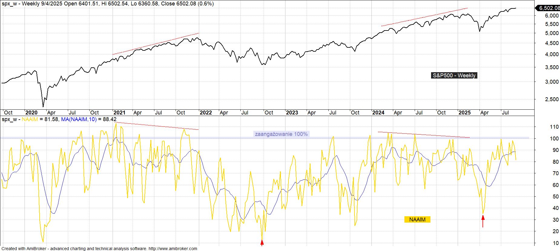 Na koniec cotygodniowego przeglądu amerykańskich wskaźników sentymentu rzut oka na średnie zaangażowanie aktywnych zarządzających prezentowane przez The National Association of Active Investment Managers (NAAIM). Na tle omawianych wcześniej wskazań AAII oraz II w ostatnim czasie dostrzegalny był tu relatywnie największy optymizm, jednak i w tym przypadku w kontekście długoterminowych perspektyw nie pojawiło się nawet wstępne kontrariańskie ostrzeżenie w postaci wzrostu zaangażowania na rynku akcji powyżej granicy 100% (bieżący odczyt to 81.6%, maksymalny w bieżącym cyklu 99.3%).