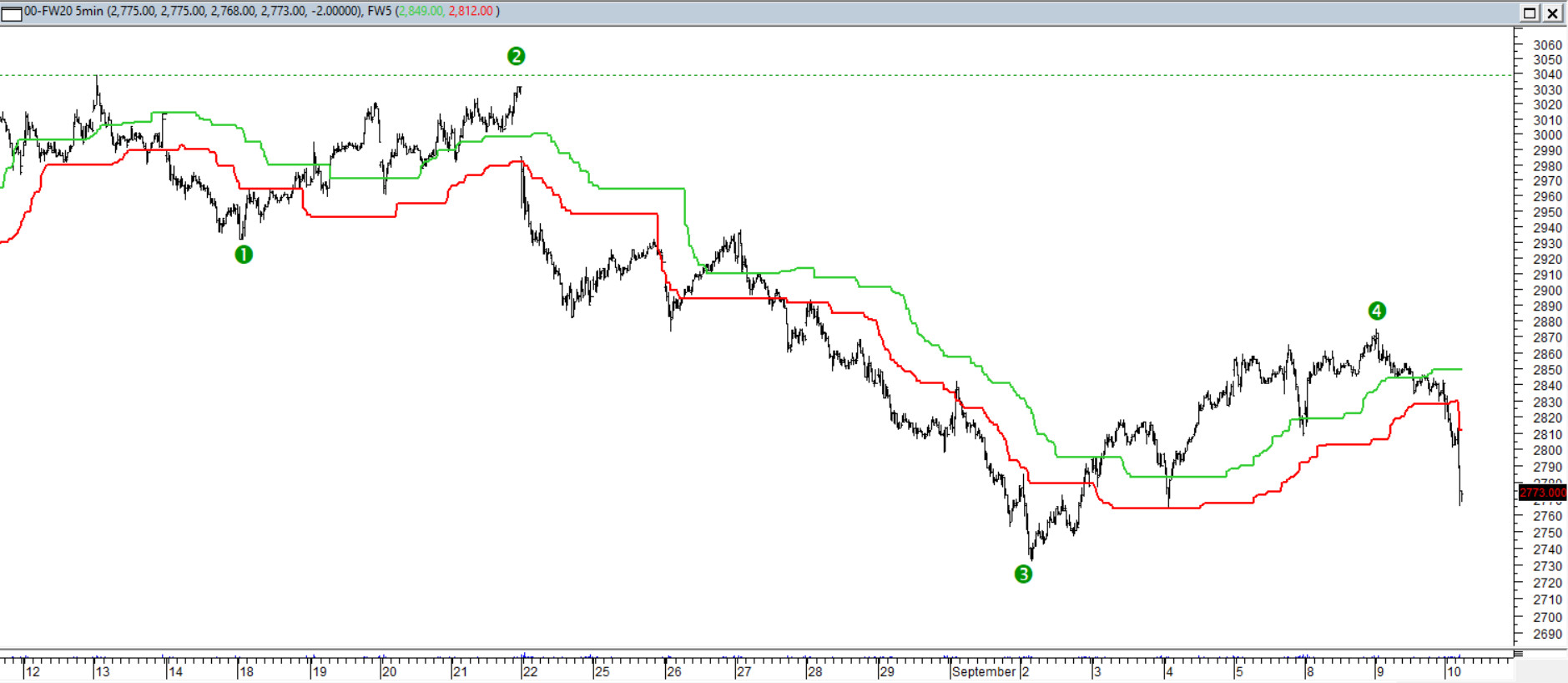 Emocje związane z wydarzeniami przy granicy przenoszą się (co nie dziwi) na rynek kapitałowy. Z perspektywy fal Elliotta obowiązuje nadal założenie, iż kurs będzie próbował w ramach elliottowskiej piątki pokonać dołek z początku września i wykształcić potrzebny do wypełnienia struktury impuls. Wydłużenie ruchu podczas wzrostowej 4 fali może też sugerować słabość obecnej uzupełniającej piątki.