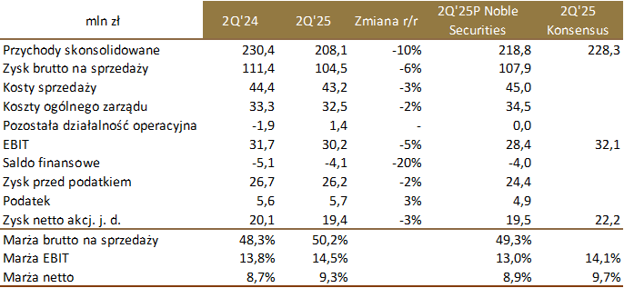 W 2Q’25 Śnieżka osiągnęła 208,1 mln zł skonsolidowanych przychodów ze sprzedaży, 30,2 mln zł EBIT i 19,4 mln zł zysku netto przypisanego akcjonariuszom Śnieżki.