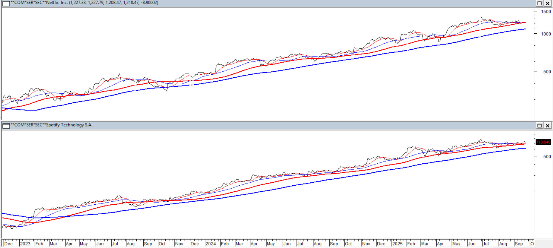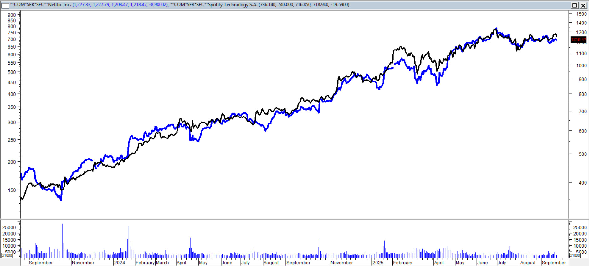 Netflix i Spotify to firmy, które zarabiają działając na nasze zmysły: wzrok i słuch. Okazuje się, że od dwóch lat sposób poruszania się ich kursów jest niezwykle do siebie podobny. Jednak stopa zwrotu liczona z różnych badanych okresów znacznie bardziej jest satysfakcjonująca w przypadku tego drugiego waloru. Podobnie ma się rzecz z odchyleniem od średnich i odchyleniem od swoich lokalnych ekstremów. Zysk i Ryzyko zwiększone - Spotify zachowuje się bardziej dynamicznie, Netflix na jego tle wydaje się bardziej statyczny i dostojny, czyli prawie jak brat z siostrą. Tylko kto jest kim?