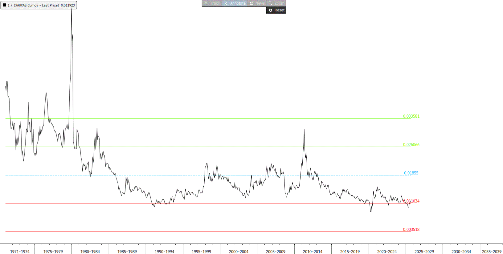 Statystyka: od 1971 r. średnia relacja złota to srebra to 0,1529, natomiast aktualny poziom to 0,1194 => aby relacja wróciła do historycznej średniej to srebro powinno wzrosnąć o blisko 30%.
