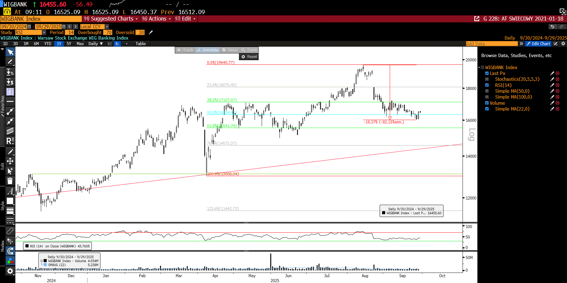 WIG-Banki po blisko 18% spadku sygnalizuje koniec korekty i przejście w fazę odreagowania spadków.