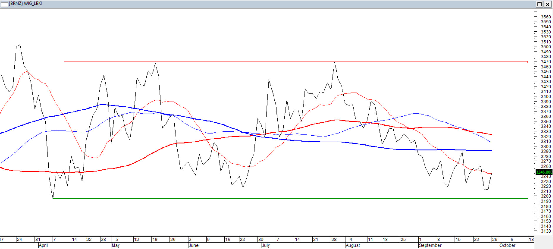 Byki wciąż niedomagają, bo za takie można uważać ponowne dojście do dolnego ograniczenia konsolidacji uformowanej pomiędzy kwietniowym dołkiem a majowym maksimum. Im kurs porusza się bliżej minimum z kwietnia, to tym większą przewagę (także psychologiczną, co zrozumiałe) mają niedźwiedzie. W końcu zbliża się koniec roku, a kurs od jego początku robi już na bardzo niewielu dobre wrażenie. W efekcie rozłożone średnie 15.45/100/200 mają wymowę wyjątkowo podażową i raczej zniechęcają amatorów bezpiecznego otwarcia pozycji. Przyszłemu trendowi wzrostowemu mogłaby pomóc zwyżka ponad środek pasma (3333 pkt), ale chęci, póki co, by tam ruszyć, nie ma. Leczenie chorych byków zatem wciąż trwa.