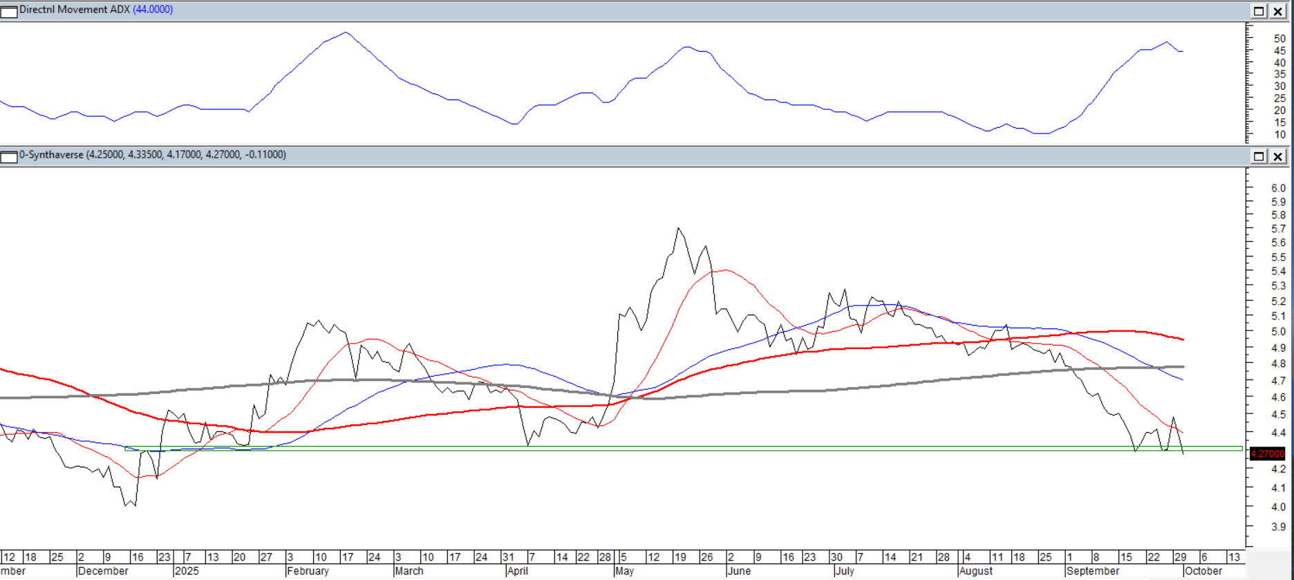 Patrząc w cenach zamknięć (choć sesja jeszcze się nie skończyła) kurs tego farmaceutyka notuje tegoroczne minima. Układ średnich 15/45/100/200 jest wyraźnie negatywny i nie sprzyja bezpiecznemu otwarciu pozycji. Także oscylatory, tak szybkie jak i wolne, raczej nie zachęcają do spekulacji i polowania na potencjalne dołki. Minimalny zasięg ruchu spadkowego (widzianego od majowego szczytu) został w połowie poprzedniego miesiąca osiągnięty i niestety przekroczony. Jedynie wysoko ukształtowany kierunkowy ADX(14) szuka okazji do wykonania korekty w trendzie. Trend bezsprzecznie jest spadkowy, a to powinno raczej znacząco skrócić do minimum inwestycyjny proces myślowy.