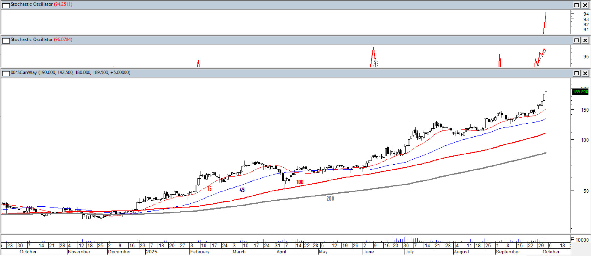To walor notowany w segmencie spółek New Connect, który obecnie notuje jedną z najdłuższych sekwencji ponad średnią ze 100 sesji. W ciągu ostatnich 200 dni notowań walor przebywał powyżej wspomnianej średniej aż 197 sesji, czym może się poszczycić jedynie siedem walorów notowanych na GPW. Jednak niewykluczone, że tym razem czas trwającej sielanki w obozie byków może niebawem ulec wydatnemu skróceniu. Oscylatory szybkie i wolne (ten po raz pierwszy w swojej historii) pokonały uznane za niezwykle silne (>90 pkt), zwiastujące rychły początek korekty poziomy. Jednak inwestorzy utrzymujący pozycje w swoim portfelu nie muszą obawiać się przyszłości. Wszak w końcu każdy lub prawie każdy z nich standardowo powinien mieć w swojej strategii inwestycyjnej wcześniej ustalone poziomy ucieczki.