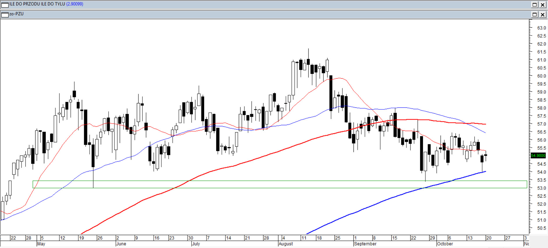 PZU od początku października pozostaje pod presją podaży, a kurs coraz wyraźniej i dłużej porusza się pod średnią 45-sesyjną. Próba odbicia z pierwszej połowy miesiąca nie zyskała aprobaty popytu, a notowania ponownie testują okolice 54,5 zł, czyli ważne wsparcie z wiosny. Kurs nie był tak blisko średniej z 200 sesji od listopada 2024 roku, co dobrze oddaje skalę osłabienia. Krótsze średnie schodzą pod długoterminowe, co potwierdza utratę impetu. Na wykresie tygodniowym próżno w ostatnich tygodniach dostrzec wyraźne ofensywne korpusy – te od połowy sierpnia nie przekraczają 2%, co dobrze pokazuje brak przekonania co do właściwego kierunku ruchu. Stopa zwrotu z ostatniego półrocza nie powala – znajduje się poniżej +3%. Na rynku pozostali już chyba tylko cierpliwi, czyli ci, których dawniej wyróżnił w swoich „złotych myślach” Warren Buffett. Dopóki kurs nie wróci powyżej 56,5 zł, a najlepiej 58,0 zł, scenariusz bazowy pozostaje spadkowy.