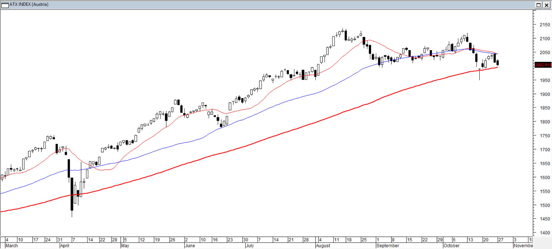 Niestety dla austriackich byków, dwa ostatnie czarne korpusy odrzucające średnie 15 i 45 w dół mogą być uwerturą do czegoś poważniejszego. Dodatkowo, od połowy września obie średnie poruszają się niemal jak sklejone, blisko siebie. Tak długi okres łączenia to zapowiedź nadchodzącego dynamizowania rynku lub wejścia w wyraźny ruch jednokierunkowy. W którą stronę zabrzmi kolejny takt tej symfonii – zależeć będzie od zachowania kursu wokół strefy 2000-2050 pkt. Partytura rynku wciąż rozbrzmiewa w tonacji durowej — ale coraz częściej słychać w niej jednak minorowe akcenty.