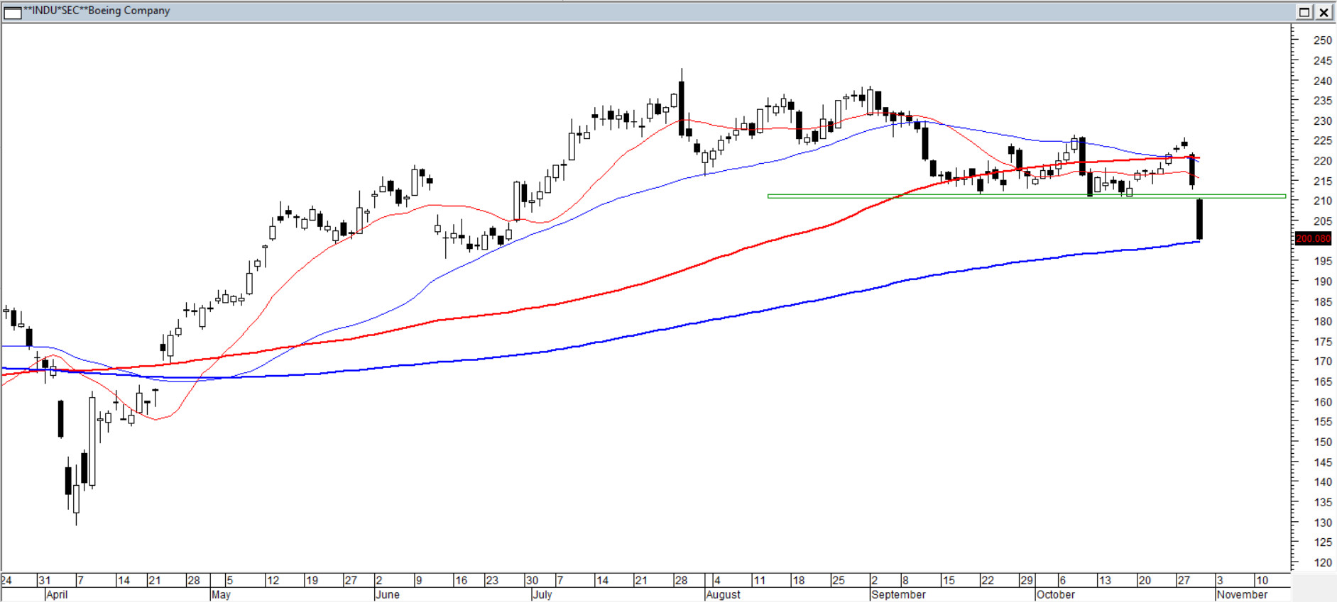 Czwartkowy ponad 6% spadek kursu mówi sam za siebie. Dodatkowo doszło do przebicia istotnego wsparcia w rejonie 210–211 USD, a całość została okraszona dwoma wyraźnymi oknami bessy. To pokazuje skalę determinacji po stronie podaży. Średnie 15/45/100 pozostawały ściśnięte do ok. 2,4% — najmocniej od poprzednich wakacji — co w praktyce zapowiadało dynamiczny ruch. Kierunek jest na razie oczywisty: niedźwiedzie mają przewagę i wykorzystują każdy podmuch słabości. Dopóki kurs akcji Boeinga pozostaje poniżej strefy 210–220 USD, obowiązuje scenariusz podażowych turbulencji — a pasy muszą pozostać obowiązkowo zapięte.