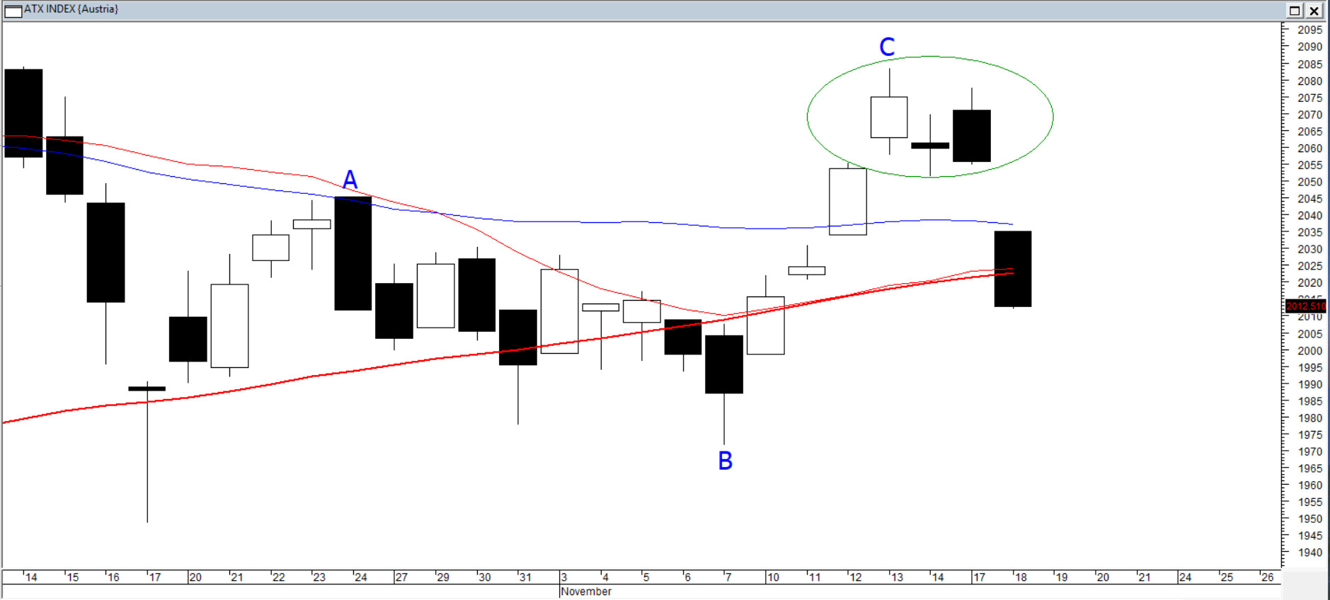 Dwumiesięczne wakacje rynku na austriackim parkiecie przeciągnęły się, notowania ułożyły się w lekko pochylony w dół kanał, który w cenach zamknięcia wygląda na stan bez końca. Dopiero wykres świecowy sugeruje, że stan permanentnego beztrendzia może ulec zmianie. Widać tam klasyczną korektę regularną w górę, a po wtorkowej sesji pojawiła się „wyspa odwrotu” — sygnał przebudzenia podaży. Warunek jest prosty: jeśli byki chcą podjąć rękawicę, muszą zamknąć wtorkowe okno i wyciągnąć indeks powyżej maksimum z ubiegłego tygodnia. Jeżeli tego nie zrobią, cały ruch odbędzie się w rytmie wiedeńskiego walca. Tylko nie tego walca, o którym wszyscy myślą.