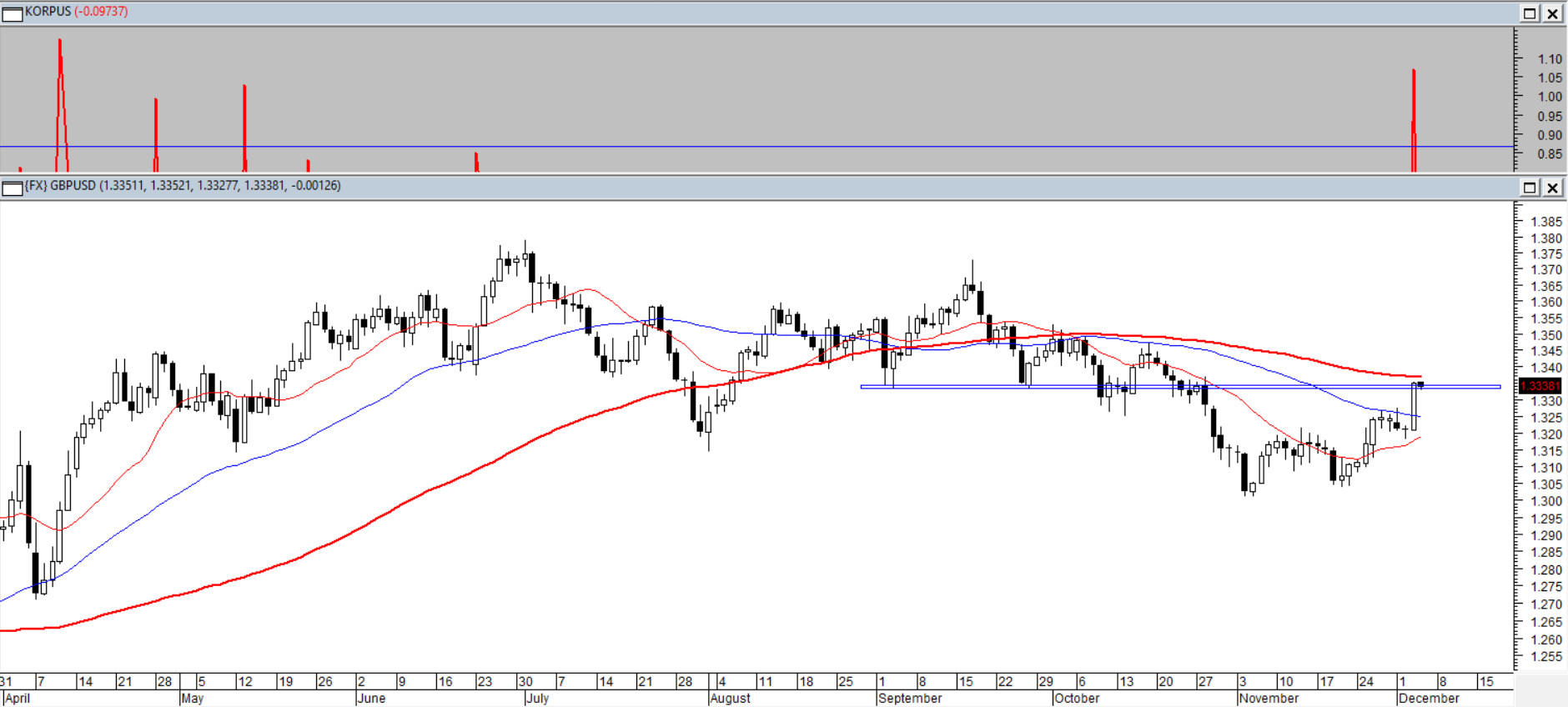 Kurs popularne Kabla po wielotygodniowym osłabieniu, gdy znalazł się najniżej od świąt wielkanocnych, wykonał mocny zwrot i dziś rysuje największy korpus wzrostowy od tamtego , wracając ponad kluczową strefę oporu w rejonie 1,3340. Wyjście ponad MA15 i MA45 poprawia krótkoterminowe momentum, Funt w stosunku do amerykańskiego Dolara wygląda technicznie znacznie lepiej i wreszcie pro-wzrostowo. Z punktu widzenia fal doszło do wyraźnego wydłużenia, więc scenariusz III fali pozostanie w grze. Kluczem do sukcesu będzie obrona wczorajszego korpusu, choć potwierdzenia i kolejnego sukcesu należy szukać już powyżej „setki”.