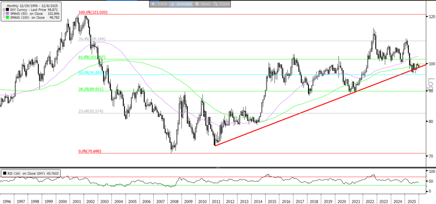 AT miesięczny: aktualnie trwa test wsparcia linii łączącej dołki od 2011 r.