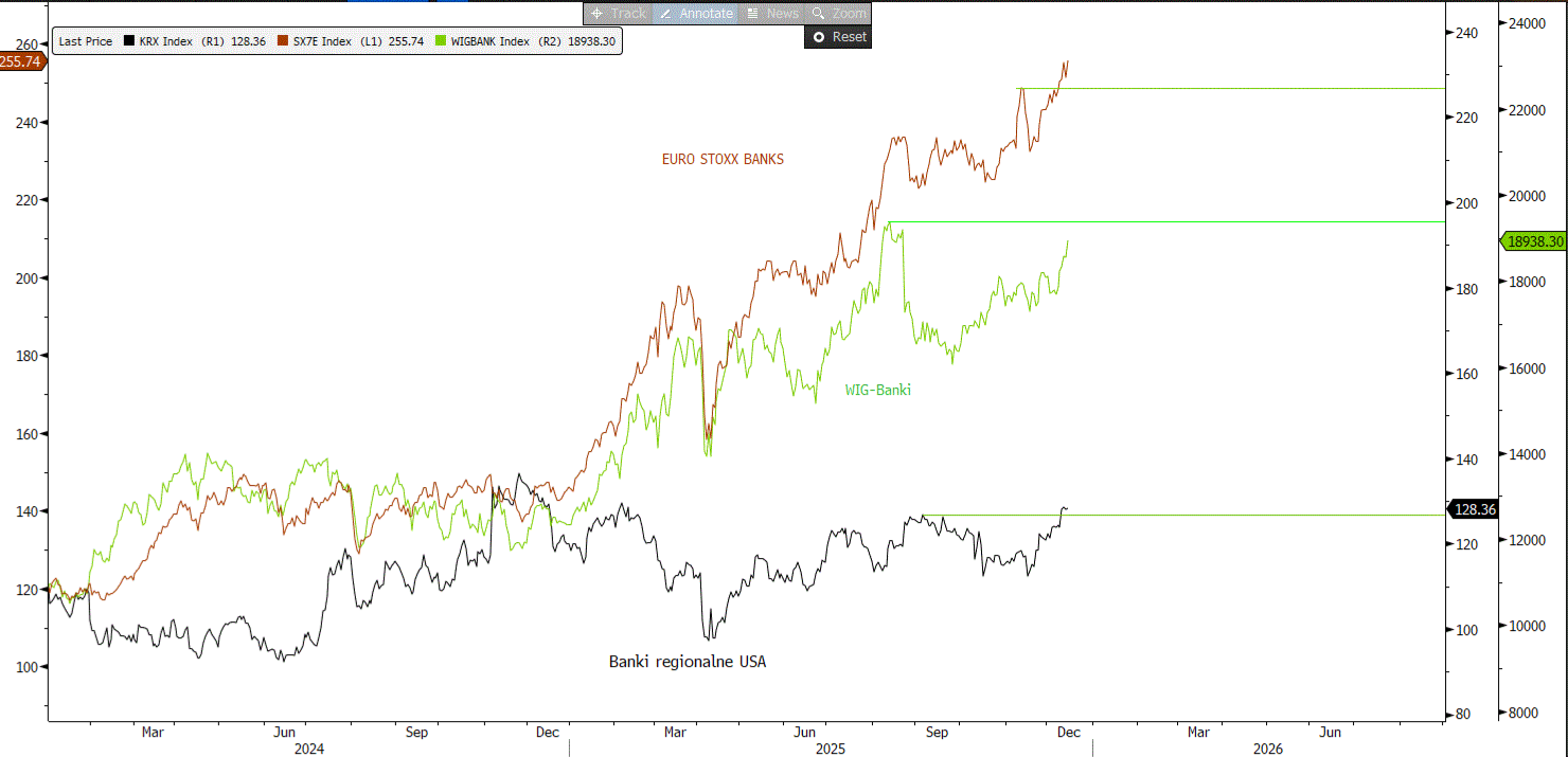 Regionalne banki amerykańskie również wyszły na tegoroczny szczyt, co tworzy spójny obraz poprawy sentymentu do banków.