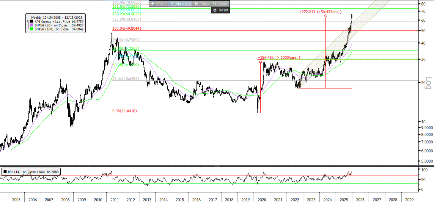 - Warto dodać, że Indie są największym konsumentem złota (cecha kulturowa) i rosnące notowania srebra zwiększają popularność pożyczek pod zastaw srebra, co jest jednym z argumentów sprzyjających euforii na srebrze.