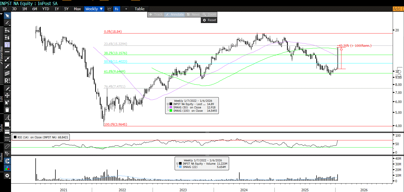 W tym tygodniu notowania spółki wzrosły o 43%. Wg spekulacji Sky News w skład konsorcjum chcącego nabyć akcje InPostu jest Advent. Główni akcjonariusze InPostu to PF Group (28,75 proc., podmiot powiązany z rodziną Kelnerów), A&R Investments, (12,49 proc., wehikuł inwestycyjny Rafała Brzoski), Advent International Corporation (6,50 proc.) oraz Norges Bank (5,01 proc.).