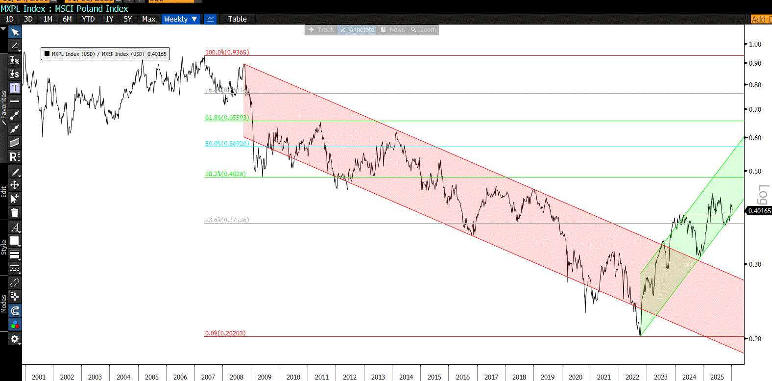 W ujęciu relatywnym indeks MSCI Poland jest w trendzie wzrostowym.