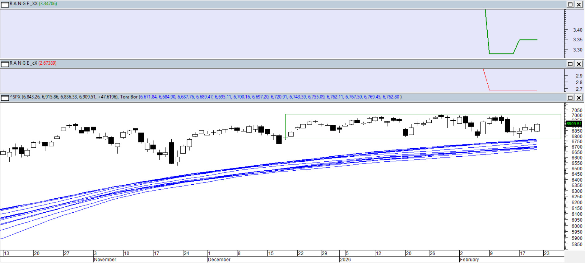 Za nami 34 sesje 2026 roku. W tym czasie amplituda między ekstremami wynosi mniej niż 3,5%, a pasmo wyznaczone przez kursy zamknięcia jest jeszcze węższe – poniżej 2,7%. Taki „squeeze” zwyczajowo oznacza uspokojenie przed ruchem kierunkowym: albo wybicie będzie agresywne, albo rynek będzie budował ruch stopniowo i w czasie. Kluczowe jest dopiero opuszczenie strefy rozrzutu – wcześniej rynek ma też pełne prawo rozegrać pułapkę w obie strony. Ostatni podobny epizod jesienią 2018 zakończył się dynamiczną sekwencją spadkową do końca roku, więc tu naprawdę warto zachować cierpliwość do wybicia i dyscyplinę ryzyka – w takim układzie pomyłka kosztuje podwójnie.