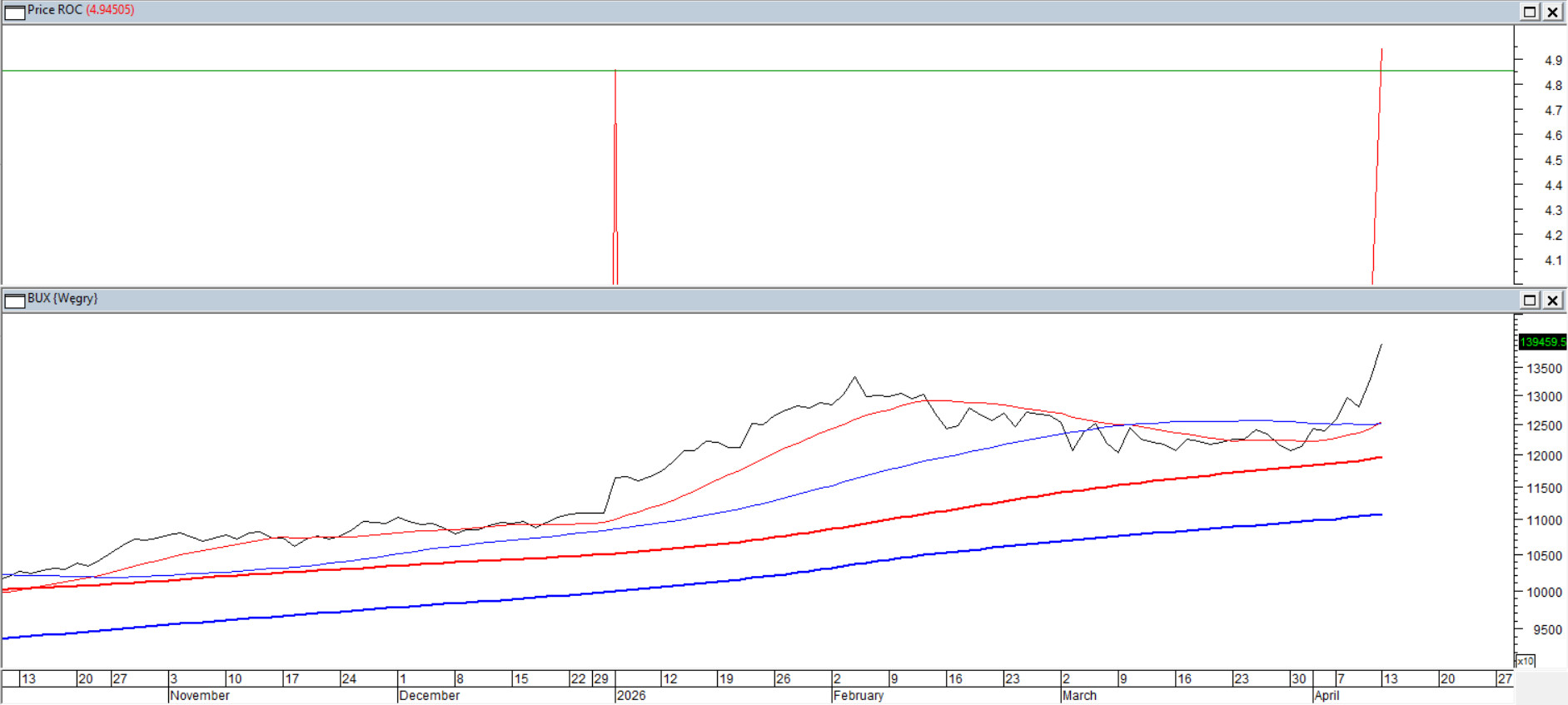 Blisko 5% wzrost na poniedziałkowej sesji to reakcja na wynik niedzielnych wyborów i jednocześnie najsilniejszy jednodniowy ruch od marca 2022. Indeks wychodzi na historyczne maksima, a układ średnich 15/45/100/200 pozostaje jednoznacznie prowzrostowy. Niezagrożona od trzech lat „dwusetka” oraz incydentalne testy średniej 100 sesji potwierdzają trwałość trendu. Szybkie oscylatory przekraczają 95 pkt., co statystycznie zwiększa ryzyko krótkoterminowego schłodzenia. Na ten moment przewaga pozostaje po stronie popytu, a ewentualne cofnięcia mają charakter klasycznej korekty w bezsprzecznie silnym trendzie.