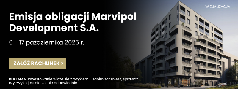 Zaprezentowane w niniejszej publikacji informacje stanowią informację handlową i są upowszechniane w celu reklamy lub promocji usług Noble Securites S.A. (www.noblesecurities.pl, Ten adres pocztowy jest chroniony przed spamowaniem. Aby go zobaczyć, konieczne jest włączenie w przeglądarce obsługi JavaScript.) („NS”) nie stanowiąc oferty ani zaproszenia do zakupu lub subskrypcji bądź składania ofert na zakup obligacji Marvipol Development S.A. Oferta przeprowadzana jest wyłącznie na podstawie prospektu podstawowego (wraz z suplementami i komunikatami aktualizującymi oraz Ostatecznymi Warunkami Emisji Danej Serii obligacji) zatwierdzonego przez Komisję Nadzoru Finansowego w dniu 19 marca 2025 r. („Prospekt”). Zatwierdzenia Prospektu przez Komisję Nadzoru Finansowego nie należy rozumieć jako poparcia dla oferty obligacji. Prospekt jest dostępny na internetowej Spółki www.marvipol.pl oraz dodatkowo w celach informacyjnych na stronie internetowej Firmy Inwestycyjnej – Michael/Ström Dom Maklerski S.A. z siedzibą w Warszawie www.michaelstrom.pl. Potencjalni Inwestorzy powinni przeczytać Prospekt przed podjęciem decyzji inwestycyjnej w celu pełnego zrozumienia potencjalnych ryzyk i korzyści związanych z decyzją o zainwestowaniu w obligacje. Ponadto zwraca się uwagę Inwestorów na potrzebę dywersyfikacji inwestycji. Szczegółowe informacje w zakresie ryzyka, jakie jest związane z inwestowaniem w instrumenty finansowe, w tym w obligacje, są także zamieszczone na stronie internetowej www.noblesecurities.pl (zakładka Dom maklerski/Rachunek maklerski/Dokumenty).