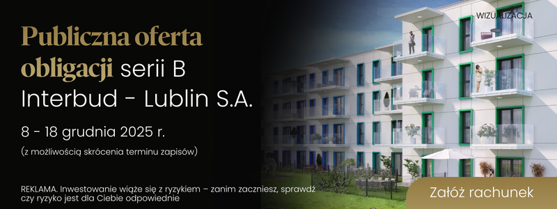 Od dziś (8 grudnia 2025 r.) w sprzedaży dostępne są obligacje serii B spółki INTERBUD - LUBLIN S.A. – przedsiębiorstwa z ponad 18-letnim doświadczeniem, które początkowo specjalizowało się w wykonywaniu robót budowlanych, a z czasem skoncentrowało swoją działalność na realizacji projektów deweloperskich, w szczególności wielomieszkaniowych zespołów apartamentowych. Emitent prowadzi działalność głównie na terenie województwa lubelskiego.