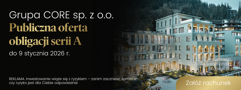 Grupa CORE sp. z o.o. wydłuża zapisy na obligacje serii A w Ofercie publicznej. Emitent to założona w czerwcu 2025 r. spółka holdingowa tworząca grupę kapitałową realizującą przedsięwzięcia deweloperskie pod marką CORE. CORE to krakowski deweloper z 15-letnim doświadczeniem, specjalizujący się w projektach mieszkaniowych i hotelowych w segmencie high-end na terenie małopolski. Od początku działalności CORE sprzedała 650 apartamentów, a w 2026 r. zamierza wprowadzić do sprzedaży kolejnych 487 lokali. Łączna powierzchnia projektów w przygotowaniu wynosi 50 000 m2.